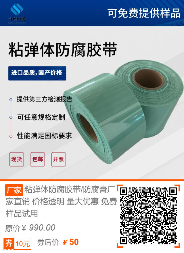 使用粘彈體防腐膠帶進行纏繞包裹,纏繞時需跟兩端原有防腐層搭接100mm。